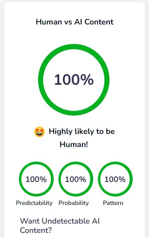 由AI生成的内容可能能恰到好处提供我们想要的内容,但有可能并不能符合我们的预期,并无人类特有的情感!contentatscale.ai使用3个人工智能引擎、自然语言处理和语义分析算法的混合,抓取谷歌,并解析所有排名靠前的, 长文并符合SEO内容,通过复杂的对比分析来查看您的内容是人类还是由ChatGPT、GPT4和Bard生成的人工智能内容!